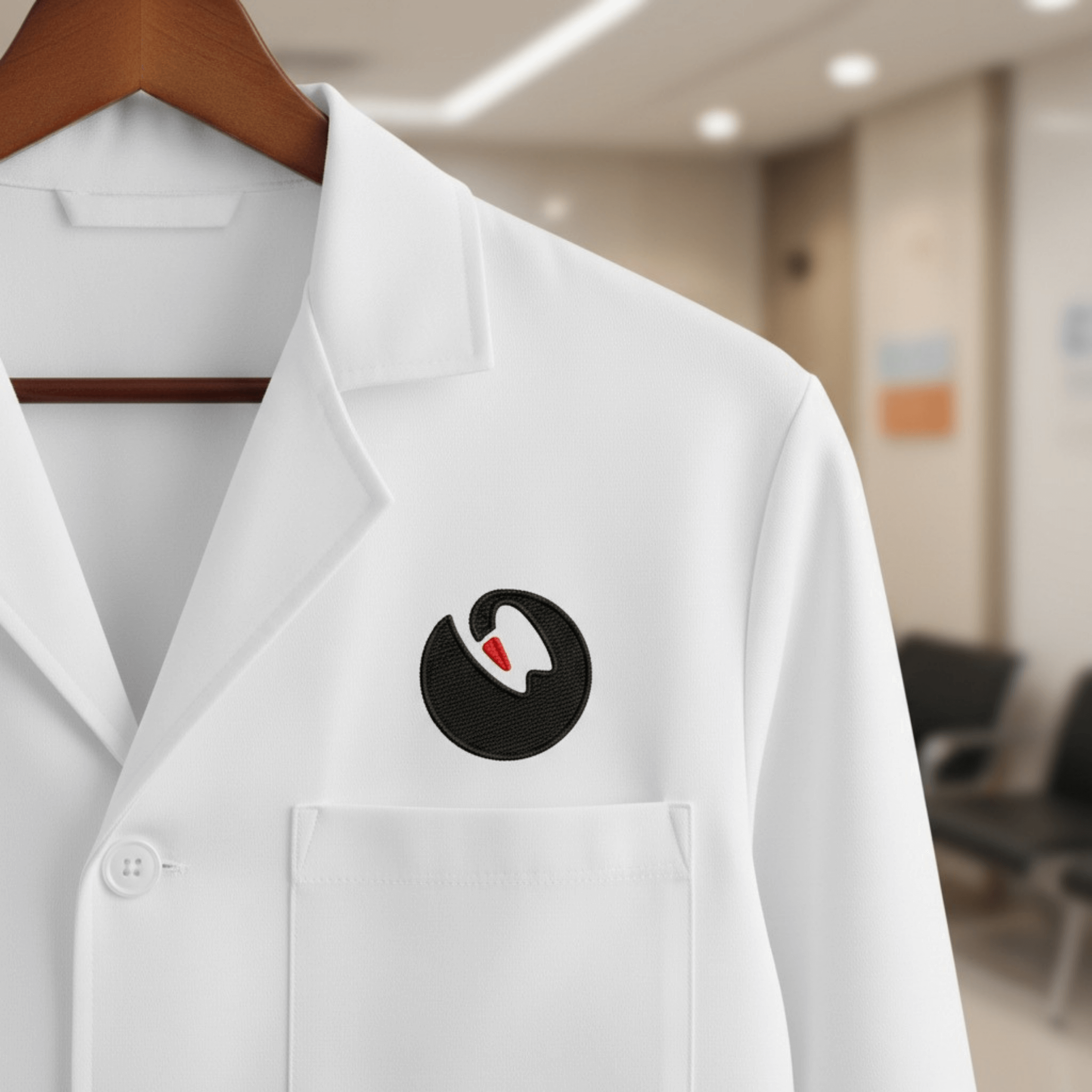 It differentiates the clinic with a clever dental cue that doesn’t rely on generic tooth icons. The high-contrast palette and minimalist emblem build trust fast, feel premium, and deliver consistent visibility across print, embroidery, and digital branding.