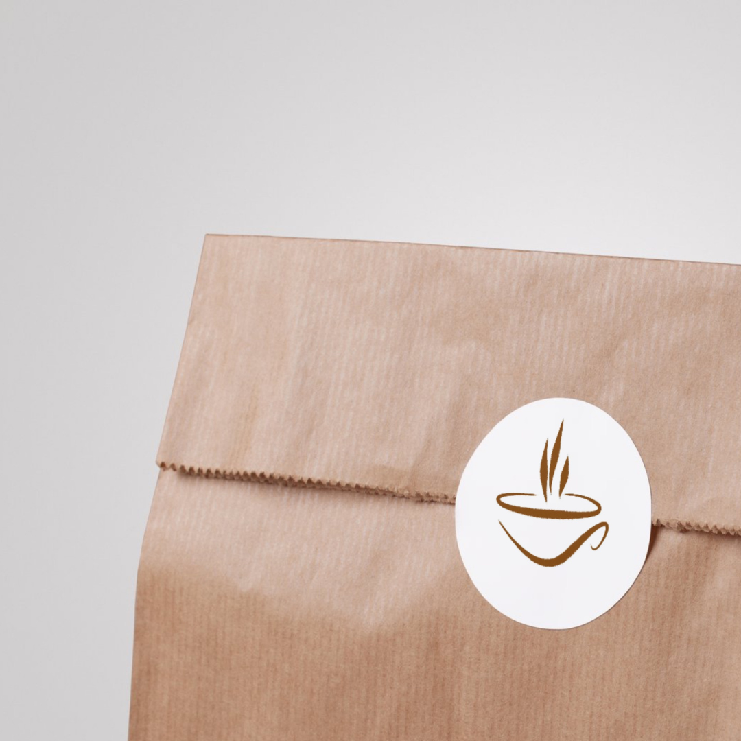 Storefront signage, menu boards, loyalty cards, cup sleeves, takeaway cups, packaging labels, coffee bags, stickers, stamps, social media avatars, website headers, delivery apps, uniforms, embroidery, and merch (caps/tees). The simple mark structure supports single-color printing, foil, emboss, and laser engraving. |