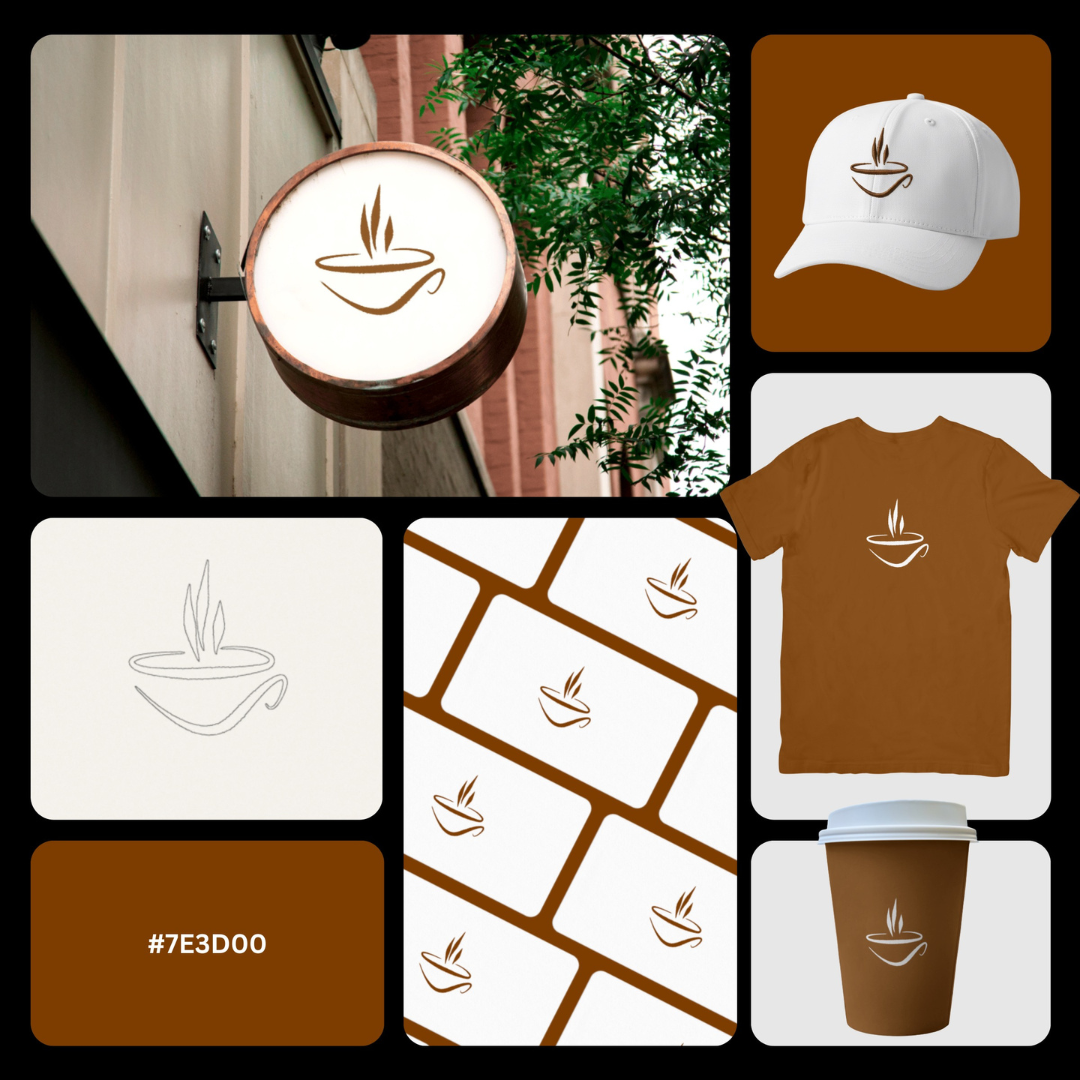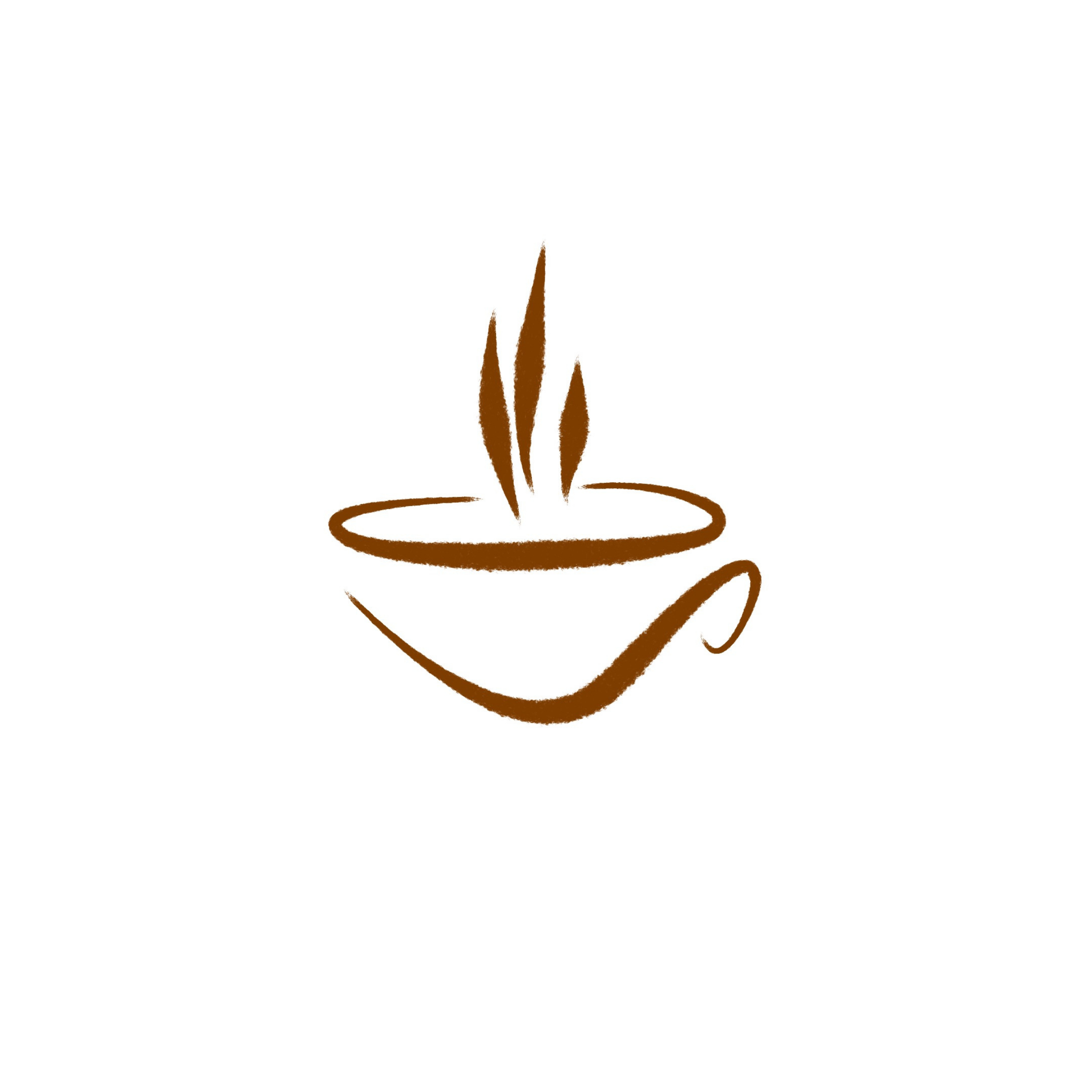 The cup communicates hospitality + service, while the rising steam evokes fresh brew, warmth, and aroma. The brush-style lines add a human touch subtly signaling handcrafted drinks, small-batch roasting, and artisan coffee moments, without needing complex illustration. |