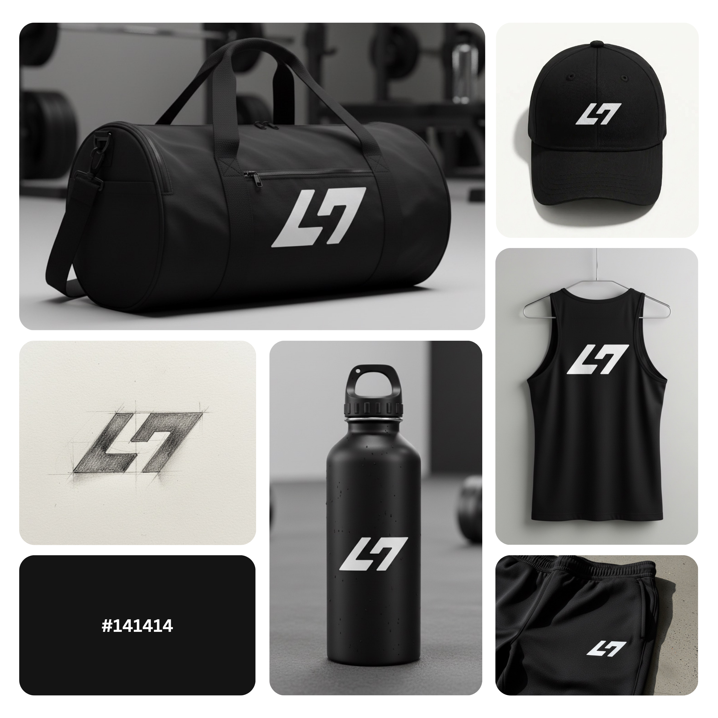 The mark reads as an L47-inspired monogram with a hidden internal path visually representing progression, focus, and structured improvement. The negative space feels like a “lane” or “track,” reinforcing athletic movement and goal-driven training. |