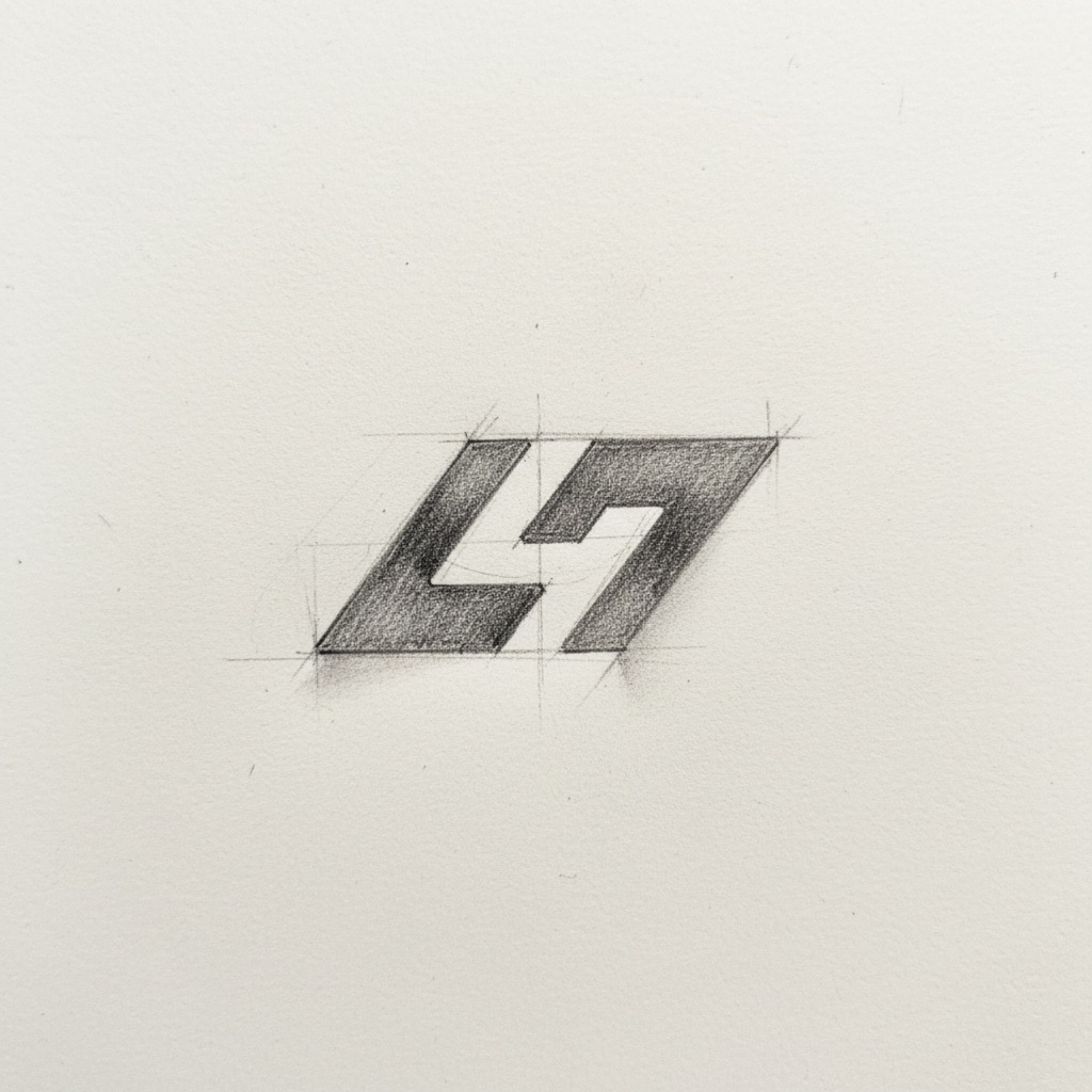 A geometric lettermark built from slanted, angular segments with clean cut-ins that create a negative space channel. The forward-leaning silhouette suggests momentum, while the simplified block forms keep the monogram crisp as a scalable brand icon. |